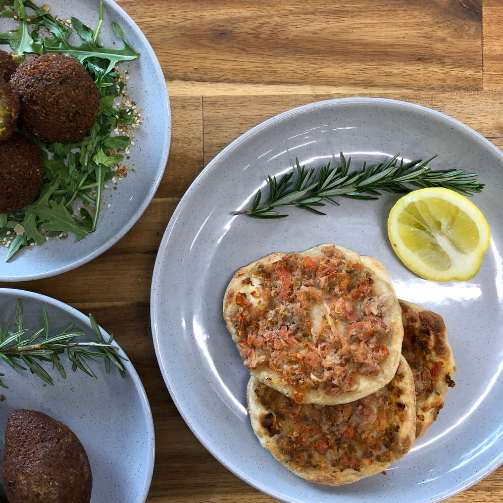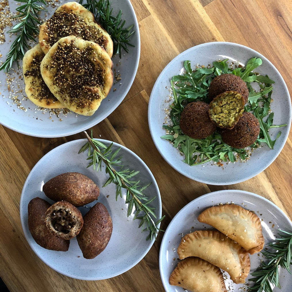 2 dips - mezze selection of 4 various options - 16 pieces and 1 salad